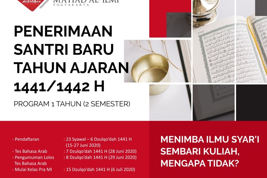 Penerimaan Santri Baru Ma’had Al ‘Ilmi Yogyakarta TA 1441/1442 H