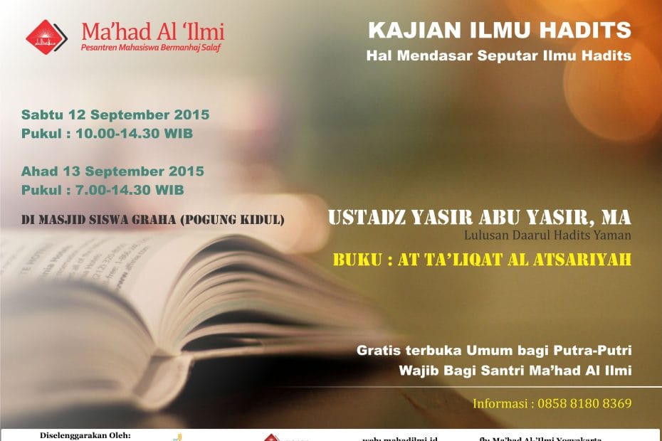 بسم الله الحمد لله و الصلاة و السلام على رسول الله و بعد Untuk mengawali… Read More »Dauroh Liburan Antar Semester Ma’had Al ‘Ilmi Yogyakarta