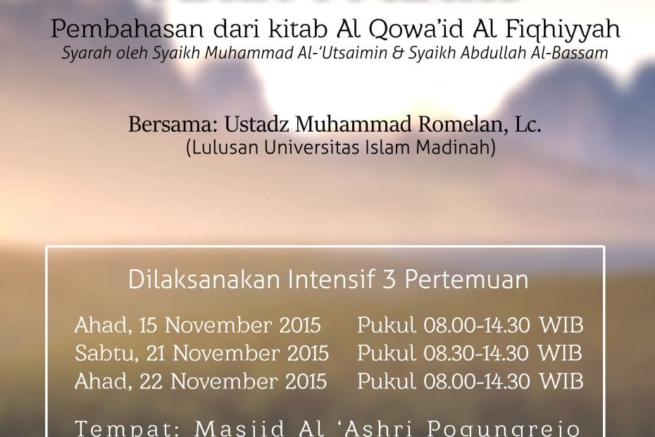Kajian Ilmiah “Beragam Kaidah Fiqih Praktis” Mengambil faidah dari kitab Al Qawa’id Al Fiqhiyyah karya… Read More »Kajian Intensif : “Beragam Kaidah Fiqih Praktis”
