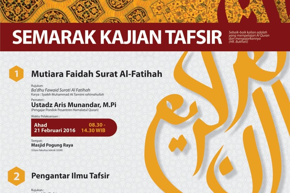 18 – 25 Januari 2014 di Masjid Al ‘Ashri, Pogung Rejo Yogyakarta