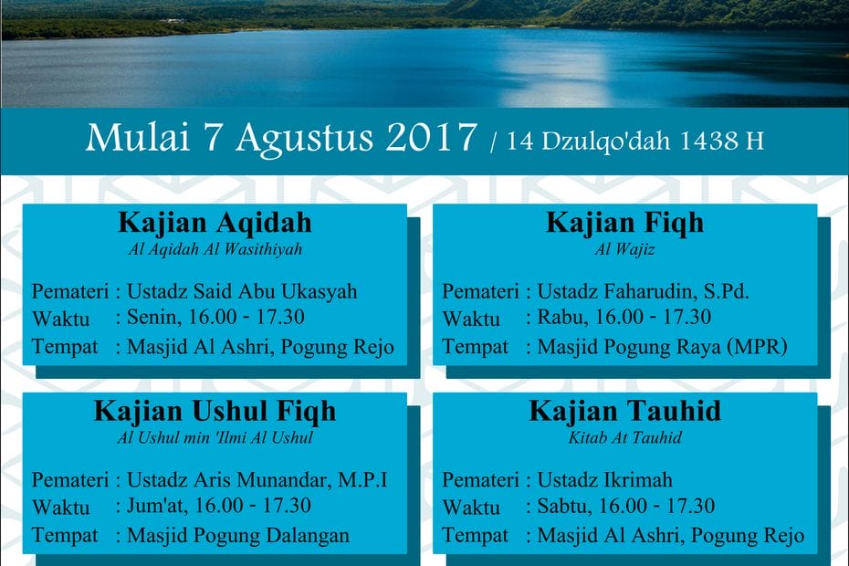 Dengan mengharap ridha Allah Ta’ala, Ma’had Al ‘Ilmi Yogyakarta insyaallah akan menyelenggarakan : KAJIAN REGULER… Read More »KAJIAN REGULER 1438/1439H